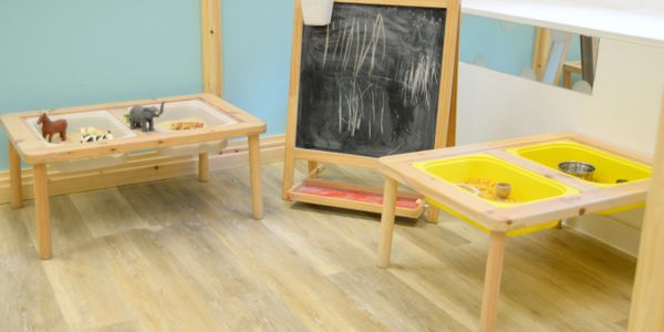 Our open shelves offer a wide range of fine motor skill development such as sorting shapes, posting postcards, fitting puzzle pieces, building train tracks, and turning knobs and wheels.
